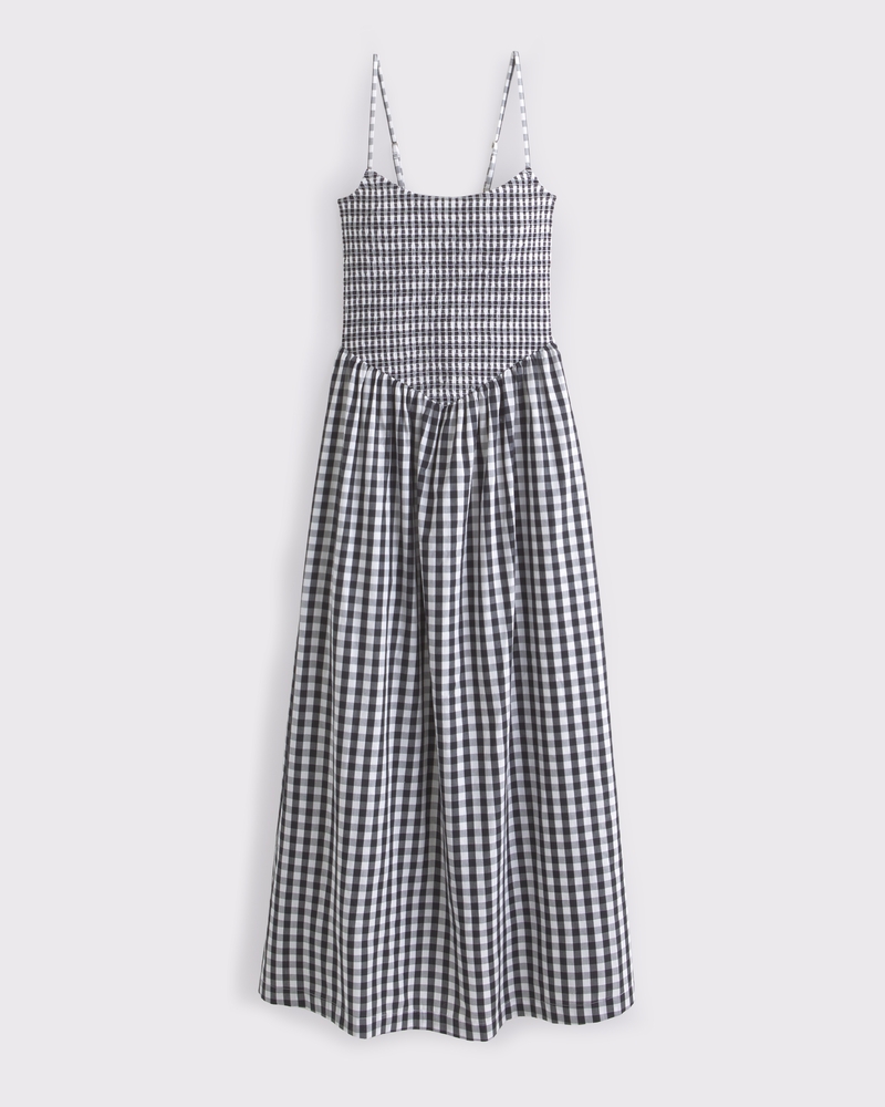 The v-shape waistline adds to the elevated feel of this gingham dress.