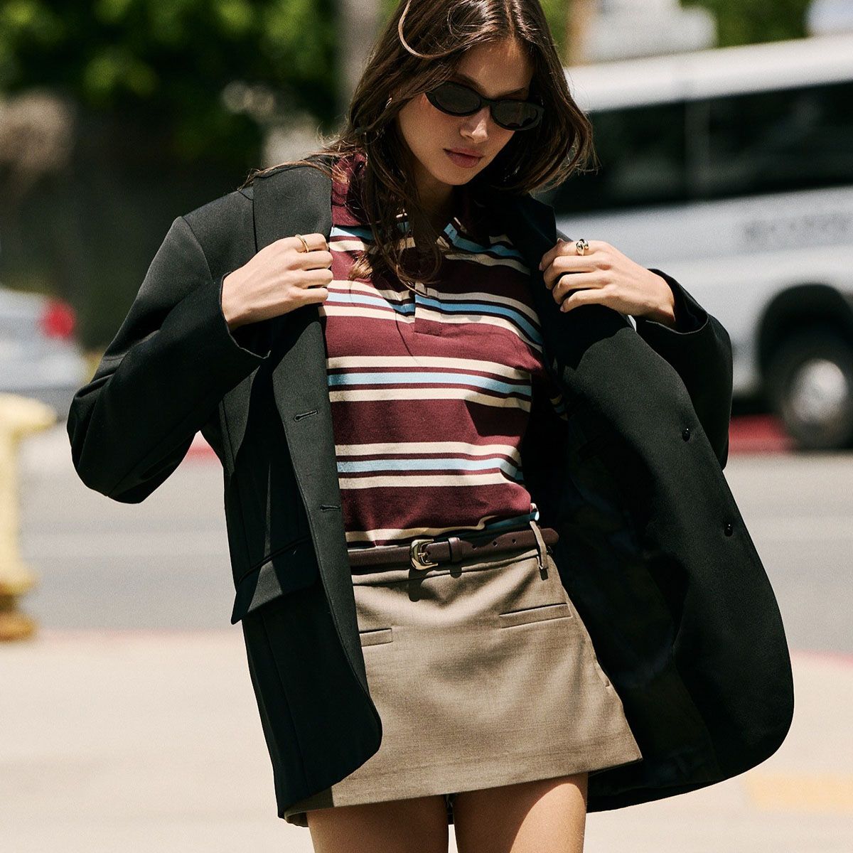 Style with an oversize button-down and kitten heels while the temps are still pleasant.