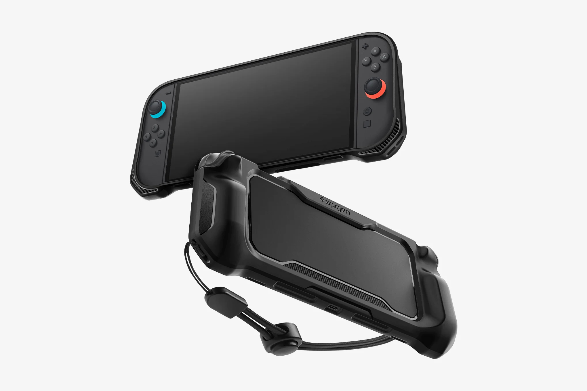 The $29.99 Spigen Rugged Armor is a suitable option. It fits around every nook and port of the Switch 2, with openings for its speakers and air intake. It gets bonus points for fitting around the edges of the Joy-Con 2 while providing more pronounced grips, which may be a boon for those who experience hand or wrist pain while holding the console in handheld mode. However, as noted, you’ll need to remove the case in order to install the Switch 2 into its original dock.