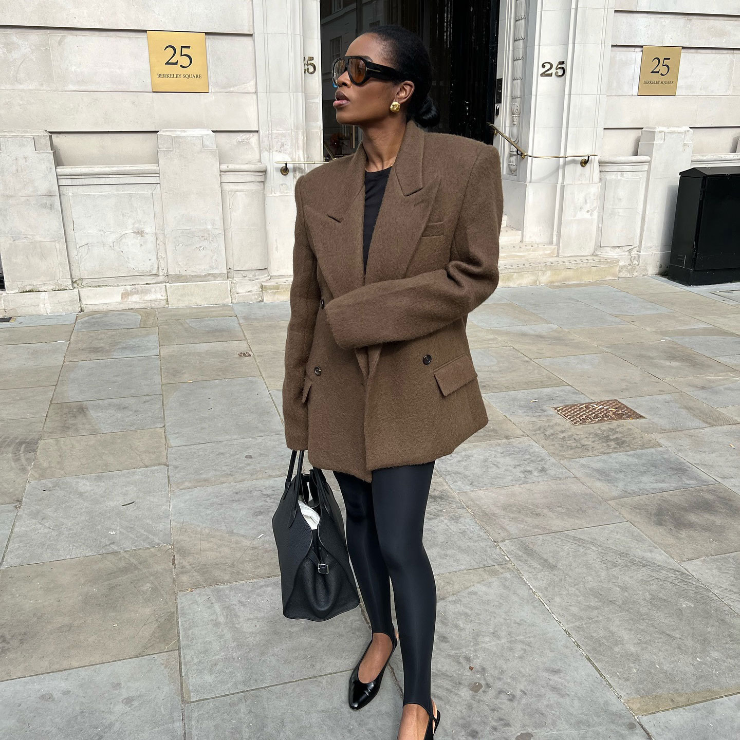 4. Oversized Blazer + Stirrup Leggings + Flats