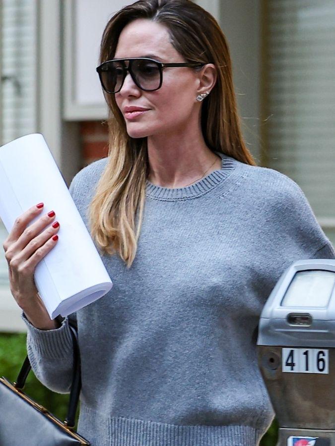 Angelina Jolie‘s personal style is all about elegance and simplicity. Favouring a dark colour palette—the actress is found styling head-to-toe black most days of the week, Jolie keeps her outfits feeling interesting and polished though the use of thoughtful accessories. A long-time fan of oversized sunglasses and classic court shoes, this weekend the actress gravitated towards another “dated” accessory that puts a polished spin on any outfit.