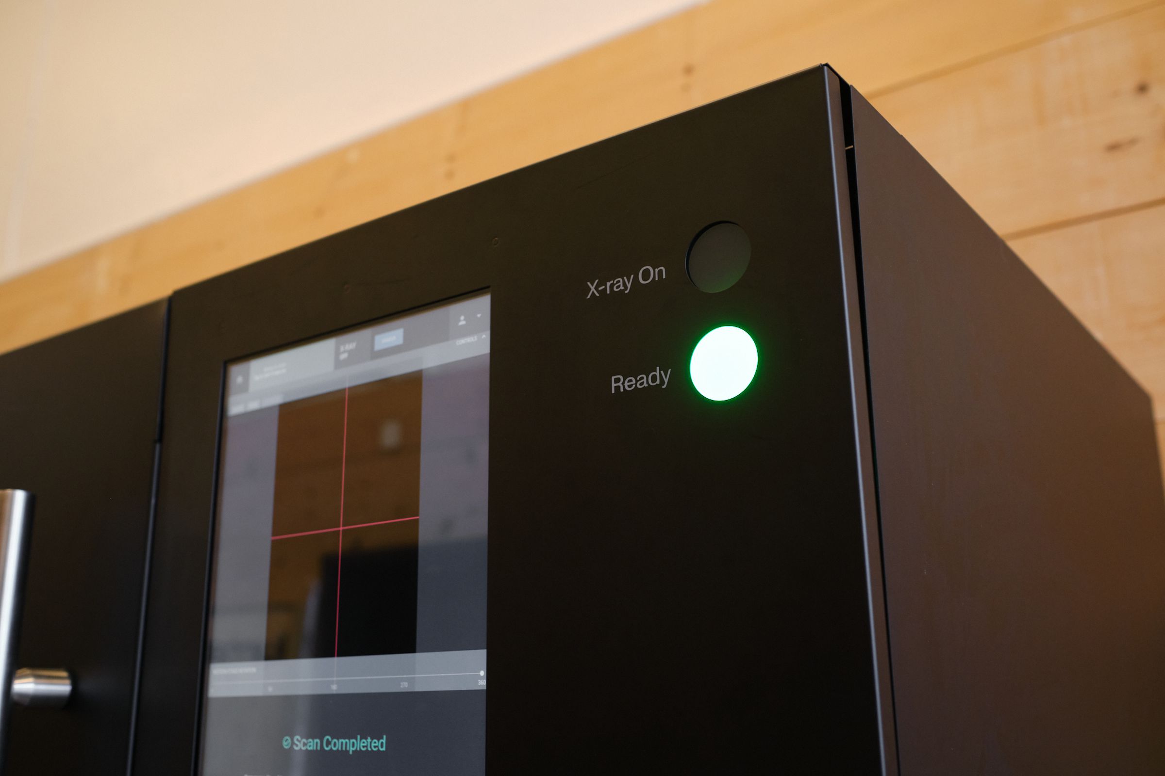 The Neptune, Lumafield’s first scanner, is a hulking machine that looks like a gigantic black microwave oven at first glance. It’s six feet wide, six feet tall, weighs 2,600 pounds, and a thick sliding metal door guards the scanning chamber while the machine is in use. Close that door and press a button on its integrated touchscreen, and it’ll fire up to 190,000 volts worth of X-rays through whatever you place on the rotating pedestal inside.