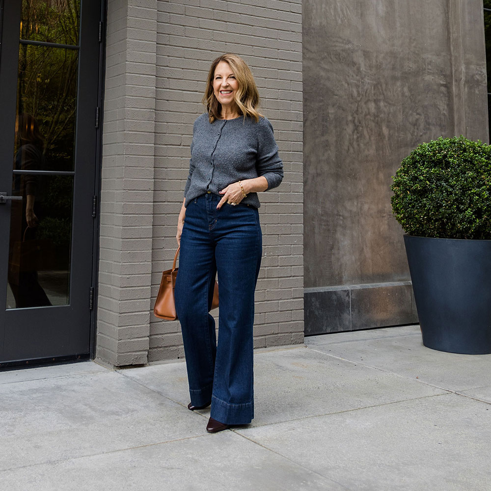 “I’m wearing dark-wash denim this winter—an essential basic that’s flattering, dressy, and always looks fashionable.” — Koszarek