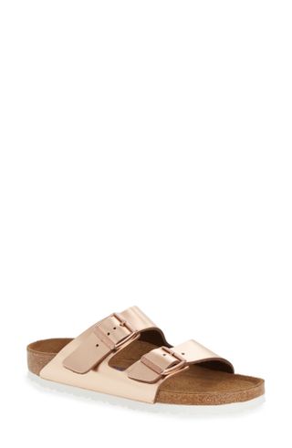 “Slides are a favorite of mine to wear with jeans and dresses. I love the clean, minimalistic style, and a neutral color or clear straps elongate my legs, making them look longer.” — Koszarek
