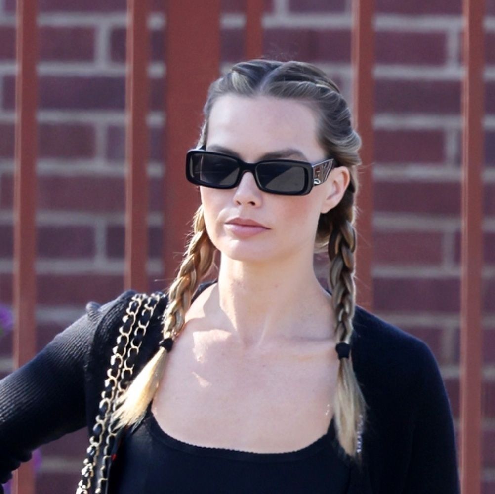 If you’ve ever wondered if Margot Robbie looks just as chic on casual days as she does for an event, the answer is yes. Robbie was recently photographed twice on the same day while out and about in West Hollywood, first wearing a pair of black pull-on pants and later changing into black high-waist leggings. With both casual pant styles, she wore a cropped tank and black The Row ballet flats, and to top things off, she wore the preppy sweater trend that keeps on keeping on: a crewneck cardigan.