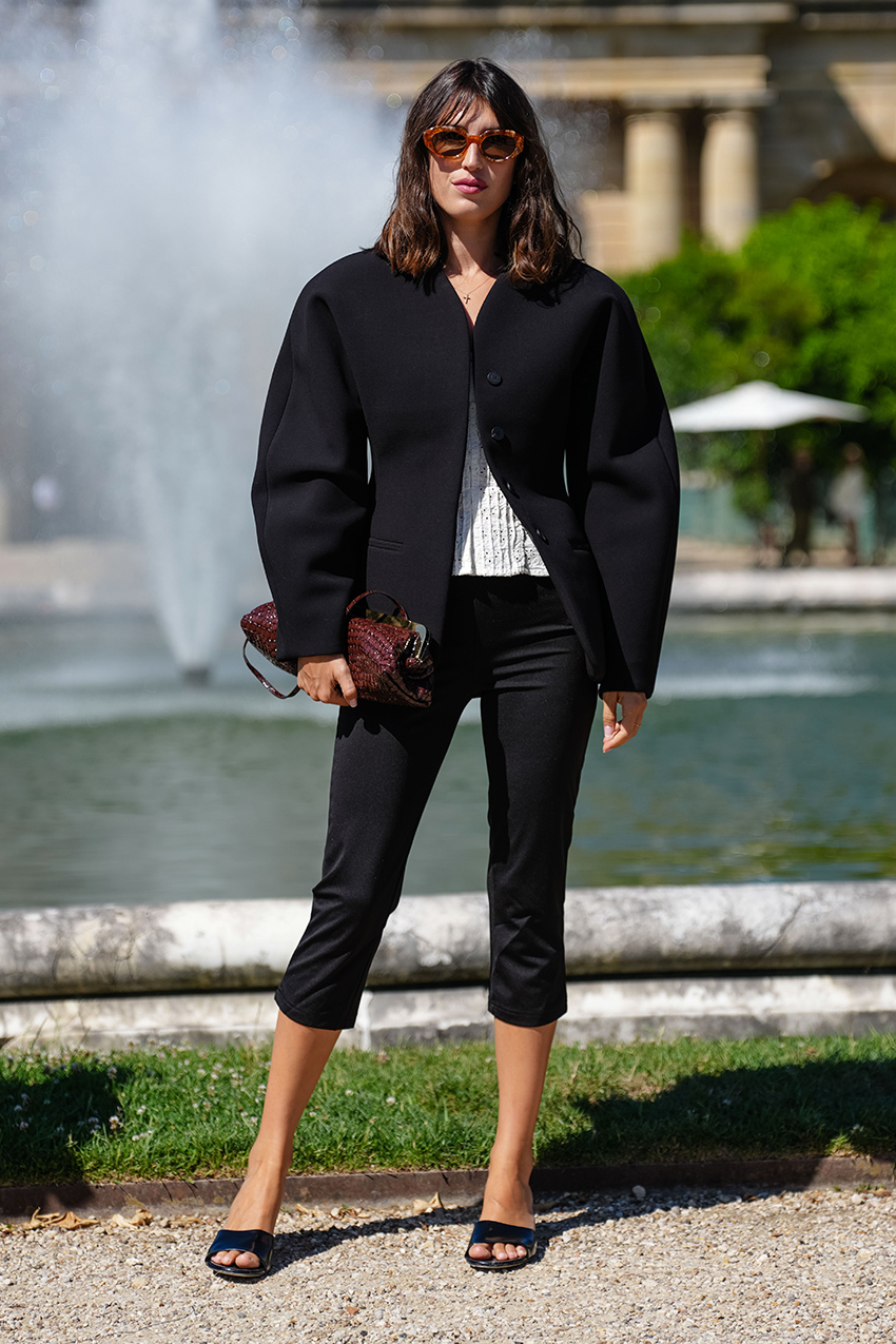 One of the French fashion people who is fully embracing the capri pants trend is the eternal It girl Jeanne Damas, who recently attended the Jacquemus show during Paris Fashion Week Men’s. She paired hers with a color-coordinating structured blazer, white top, and the shoes French women are constantly pairing with capri pants this summer: simple high-heeled mule sandals. It’s a classic yet trend-forward combination that you can’t go wrong with, so if you want to look more French this season (and who doesn’t, really?), keep scrolling to see Damas’ styling and to shop capri pants and high-heel mules that’ll give you that French-girl look in an instant.