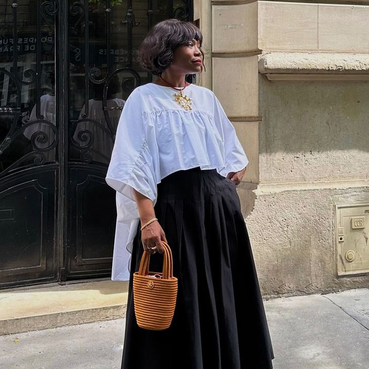 Ellie Delphine is originally from Martinique and lives in Paris, and has built a following on her account @slipintostyle for her trend commentary, red carpet analysis, and outfit shots that are always captured in the prettiest corners of the city. Her style is polished and elegant, but she’s not afraid of experimenting with color and fashion-forward looks.
