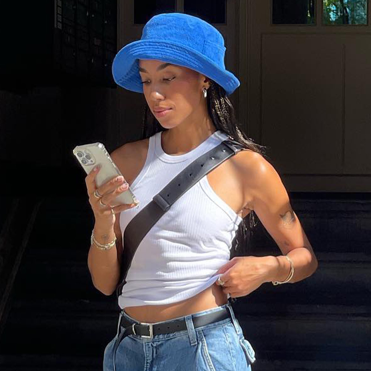 Personally, there’s nothing more Gen Z than a flowy maxi skirt. Whether it’s a slip skirt, denim, or a cargo look, we’re all about this summer staple. Wear with your favorite white tank of choice to let the skirt do all the talking.
