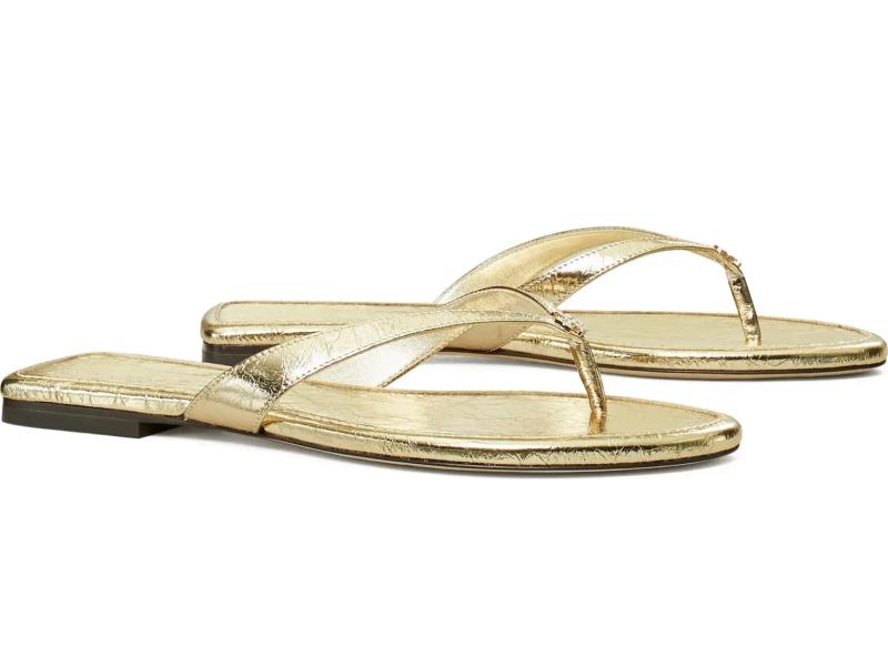 Much to the chagrin of orthopedists everywhere, flip-flops are back. These gold Tory Burch shoes are such a fun upgrade from your basic rubber ones.