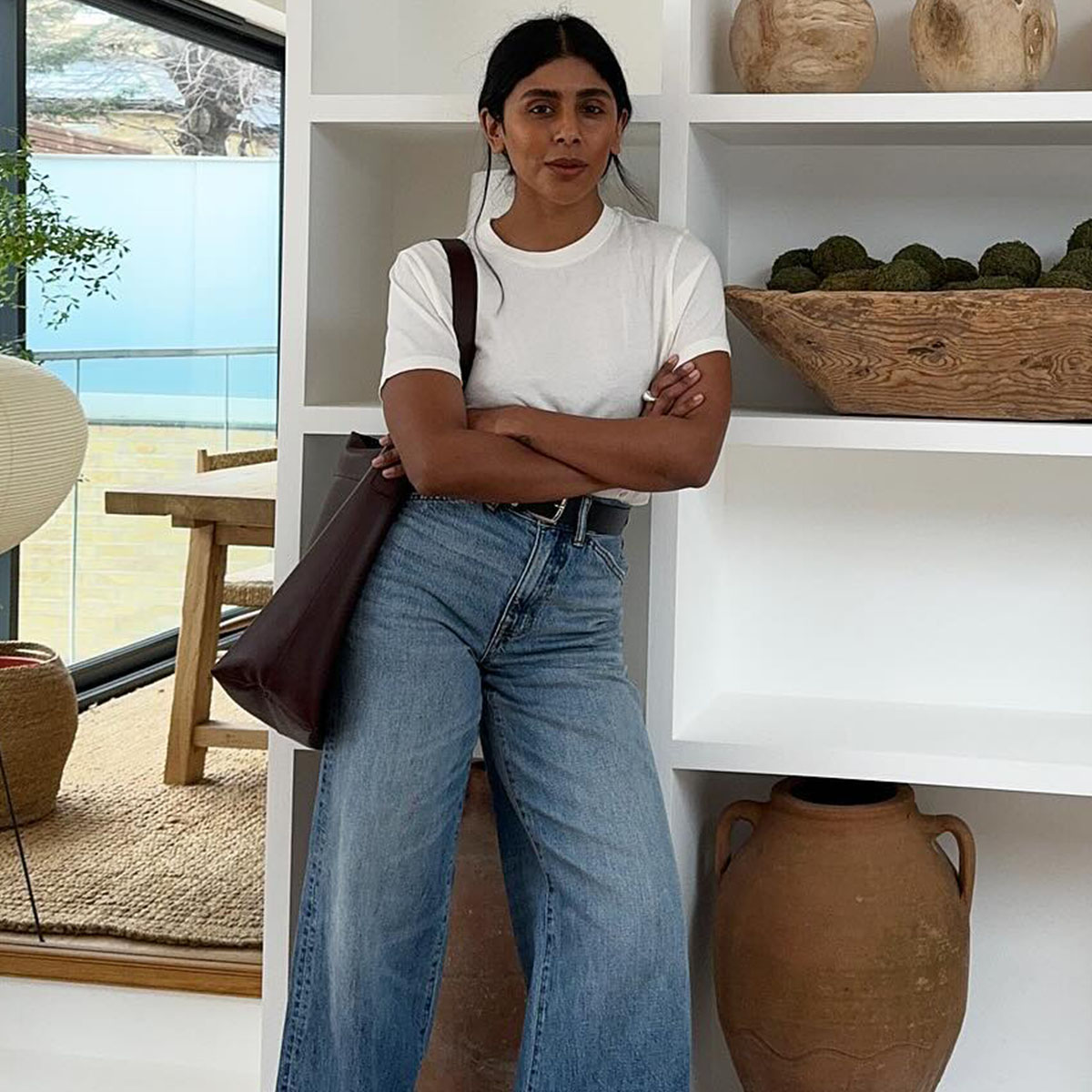 Madewell’s Harlow jeans are the perfect wide-leg silhouette. I own them in white and blue.