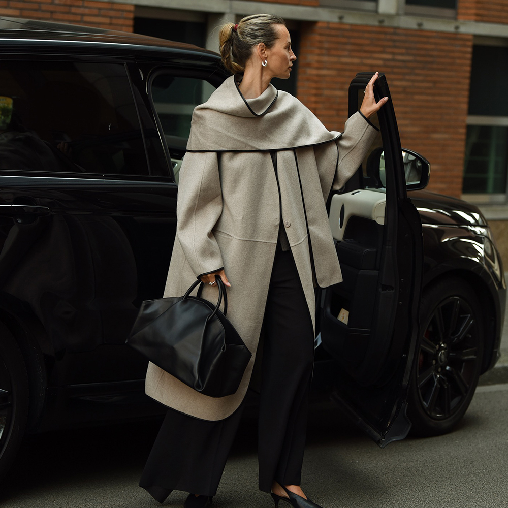 Below, you’ll find my latest fall edit featuring standout pieces that I think are particularly strong because of their modern silhouettes. On the sweater front, there’s everything from chunky knits to dreamy cashmere. Need a new bag to store the essentials? Well, I’m obsessed with bags, so you’ll find a plethora of gorgeous styles. Coats? I’ve got you covered with a stunning scarf silhouette (ahem, the one pictured above) and a barn jacket. There are also amazing shoes, jeans, suede must-haves, and so much more.