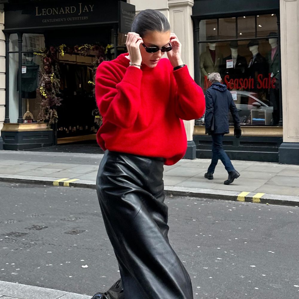 And I’m clearly not the only one captivated. My feed is awash with leather skirts styled in countless ways. From boxy knit jumpers that soften the look to tailored blazers and structured coats, the styling possibilities are far broader than you may have thought.