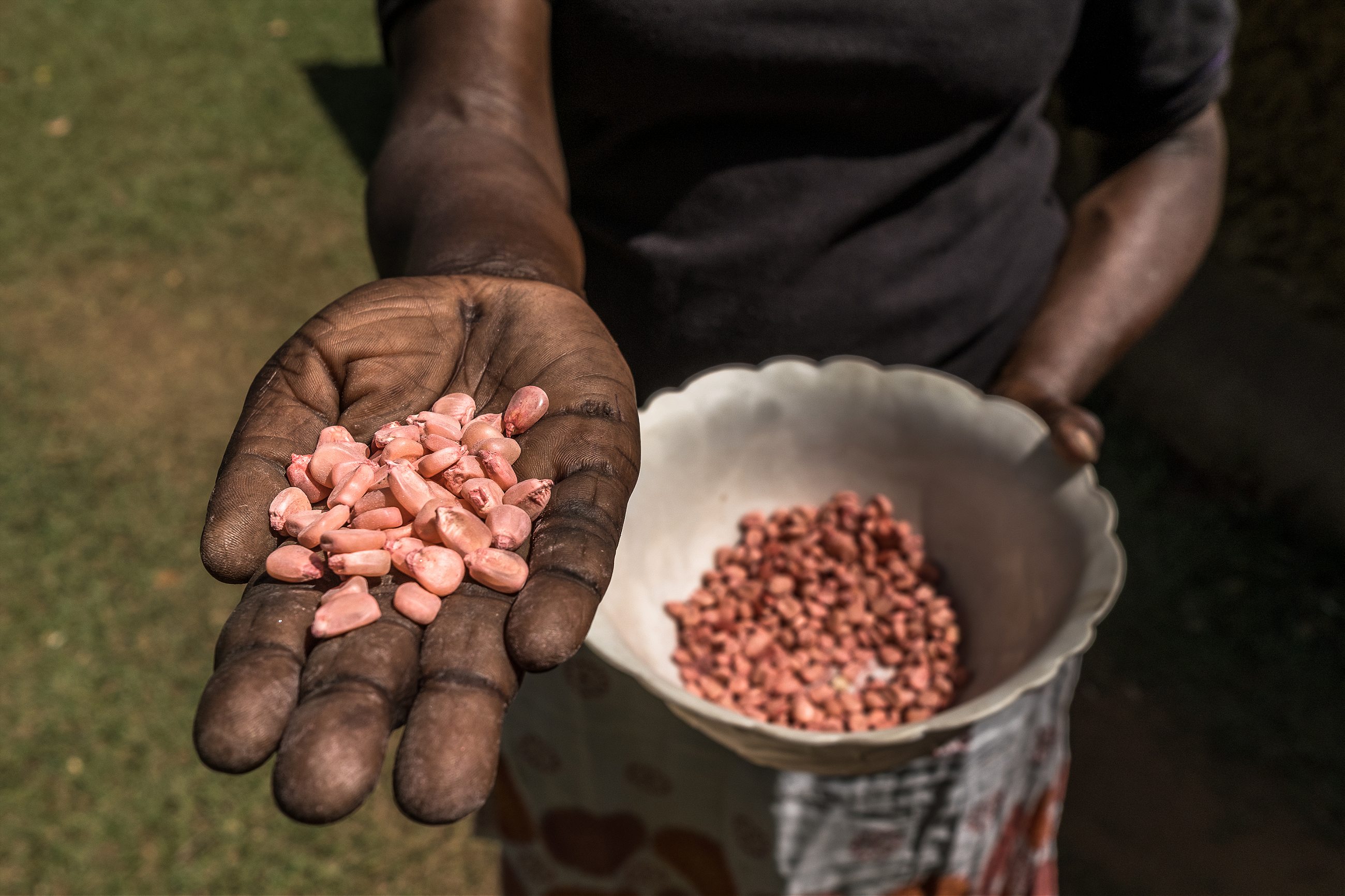 In the Kakamega lab, the FOXY-T14 mycelia are introduced to a substrate, which looks like a toothpick on a petri dish, hence the organization’s name. The secondary inoculation is done by village inoculum producers (“VIPs”), almost all of whom are farmers themselves and 80% of whom are women. The live FOXY-T14 are introduced to buckets of cooked, cooled rice, and after three days of incubation, the inoculum—a brownish, pungent rice mixture—is ready to distribute to farmers at 300 KES ($2.35) per bucket. The farmer coats each maize seed with the inoculum before placing it in the soil.