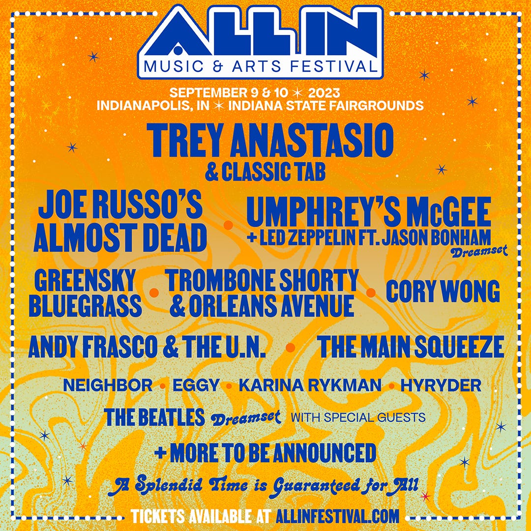 All IN Music & Arts Festival, a two-day rock festival that debuted at the Indiana State Fairgrounds in 2022, has announced a jam-band heavy lineup and scaled back plans for its second year.