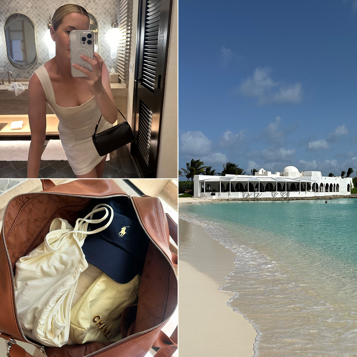For the three-night trip, I was able to pack everything in a carry-on suitcase and small duffle bag. For the duration of my stay, I rotated between swimsuits and light linen dresses worn with sandals. I paired the dresses with baseball hats during the day, and then swapped in a simple leather bag for the evening. The location lends itself to easy island dressing with time spent between the beach and some more dressed-up moments for dinner at the restaurants on-property at night.