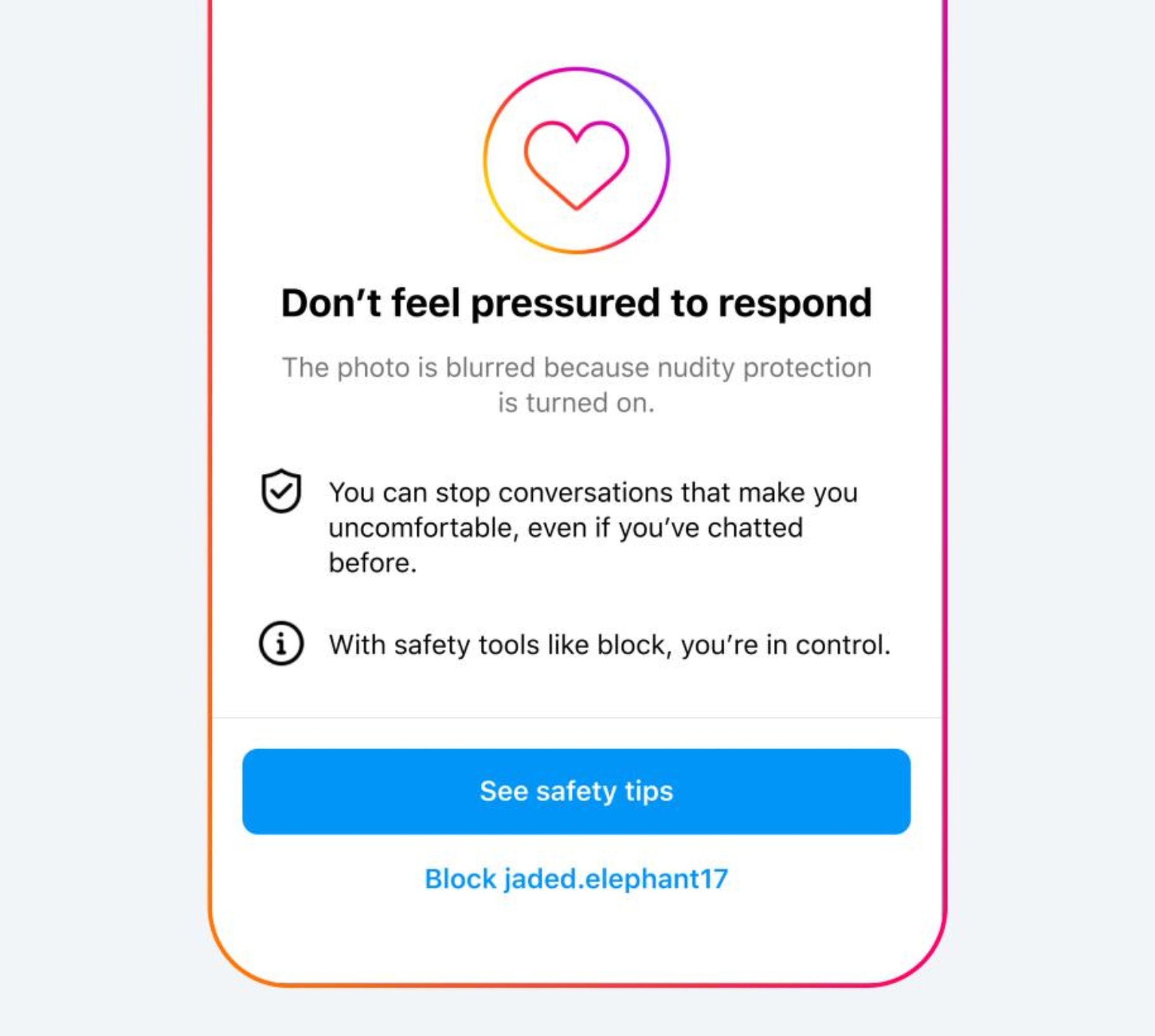 Users who try to DM a nude will also see a message warning them about the dangers of sharing sensitive photos, while another warning message will discourage users who attempt to forward a nude image they’ve received.
