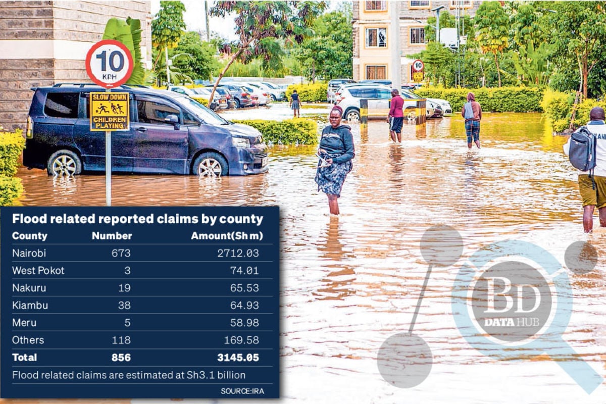 The Authority notes that by end of April, insurance companies had received upwards of 850 claims valued at Sh3.145 billion following the raging floods that affected different parts of the country.
