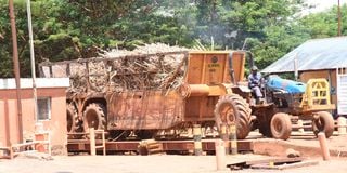 Sugarcane being weight at Nzoia sugar company weigh bridge in Bungoma county