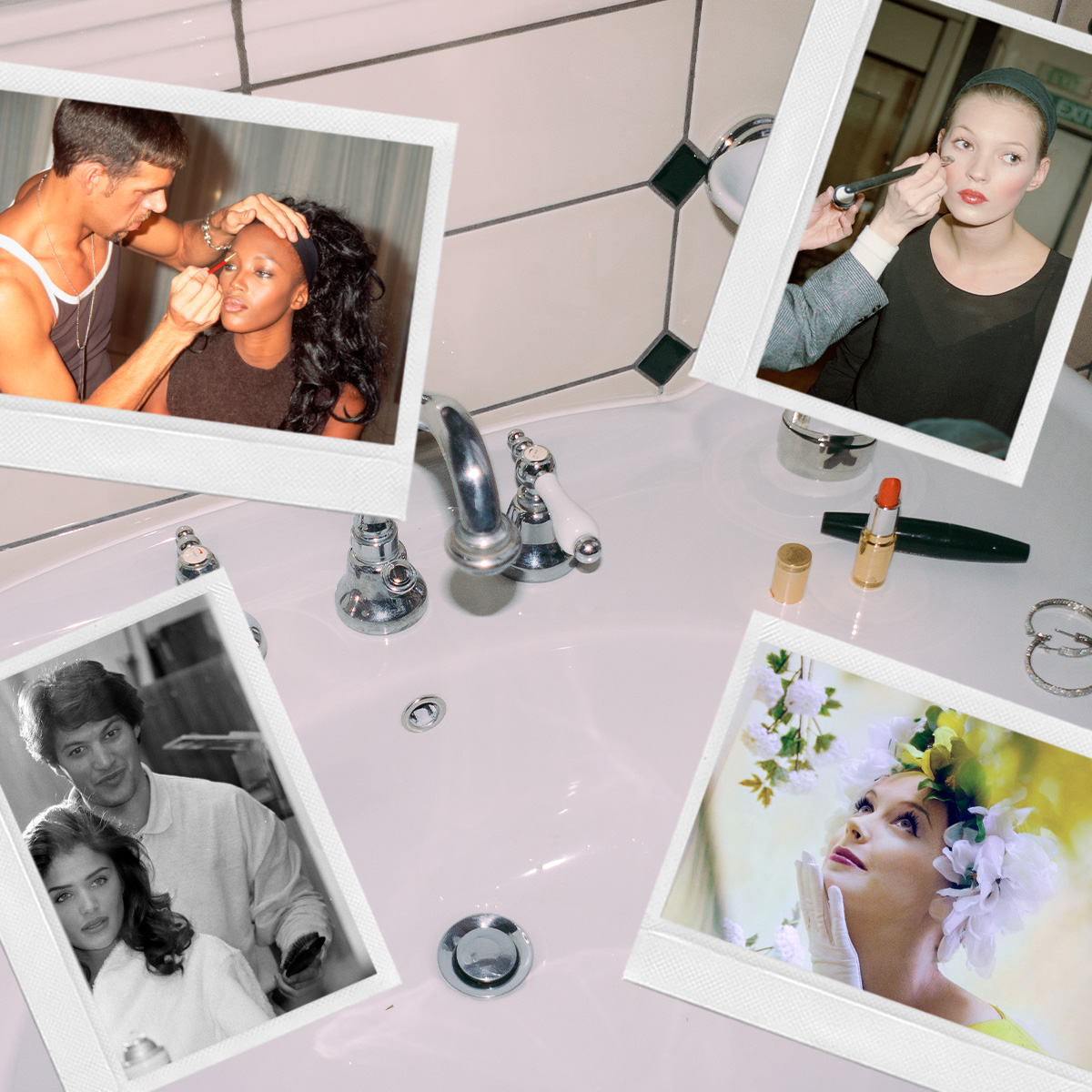 Frédéric Fekkai and Helena Christensen backstage at the Ralph Lauren fall 1992 ready-to-wear runway show