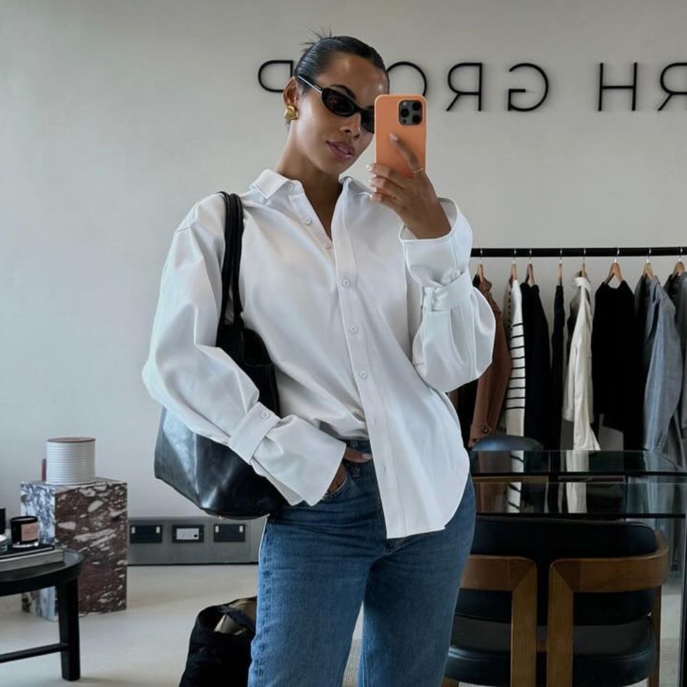 In terms of celebrity style inspiration, there are different people that I look towards for different things. If I’m in need of sleek office outfits I’ll turn to Rosie Huntington-Whiteley. If I’m searching for a party-wear refresh, I’ll probably look to Laura Harrier. And, if I’m after some day-to-day ideas, I’ll turn to Rochelle Humes. Championing jeans in her wardrobe with the same fervour as I do, I often check in with Humes via social media to see how she’s invigorating her denim collection with new-season pairings across the year.