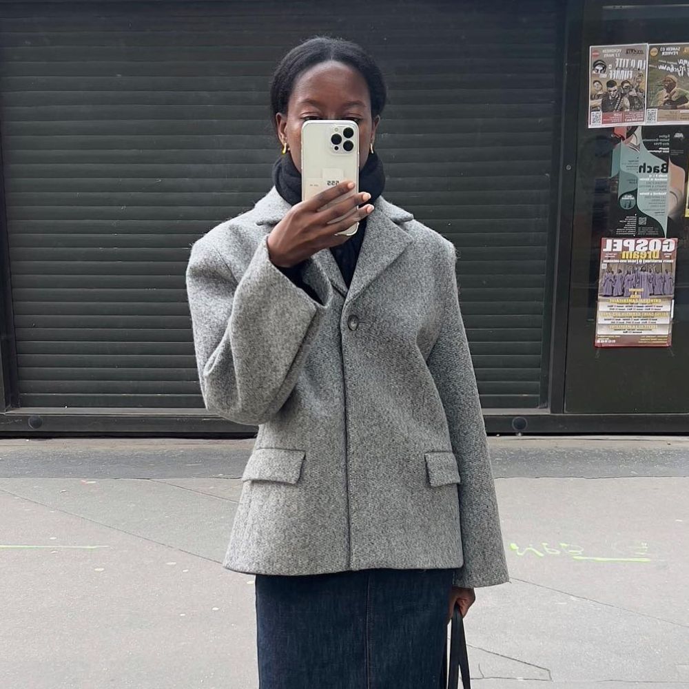Style Notes: Denim skirts can sometimes look a little casual, but a sleek knee-high boot entirely transforms the energy. To give your look even more of a lifted feel, style with a chic wool layer and select your boots in a pointed-toe style.