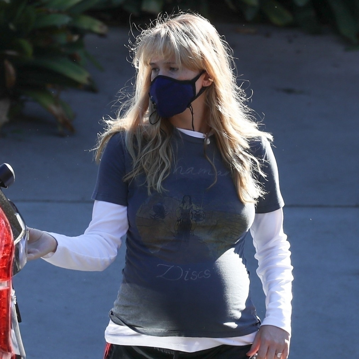Just yesterday, J.Law stepped out in L.A., donning classic Adidas track pants that she styled with gorpcore-esque Loewe flats. This combination showcases her use of unique, trendy styling choices to defy the boundaries of this casual pant trend. She completed her ensemble with a playful graphic T-shirt layered over a long-sleeve top—a clever nod to a dated layering technique that deserves its own story.