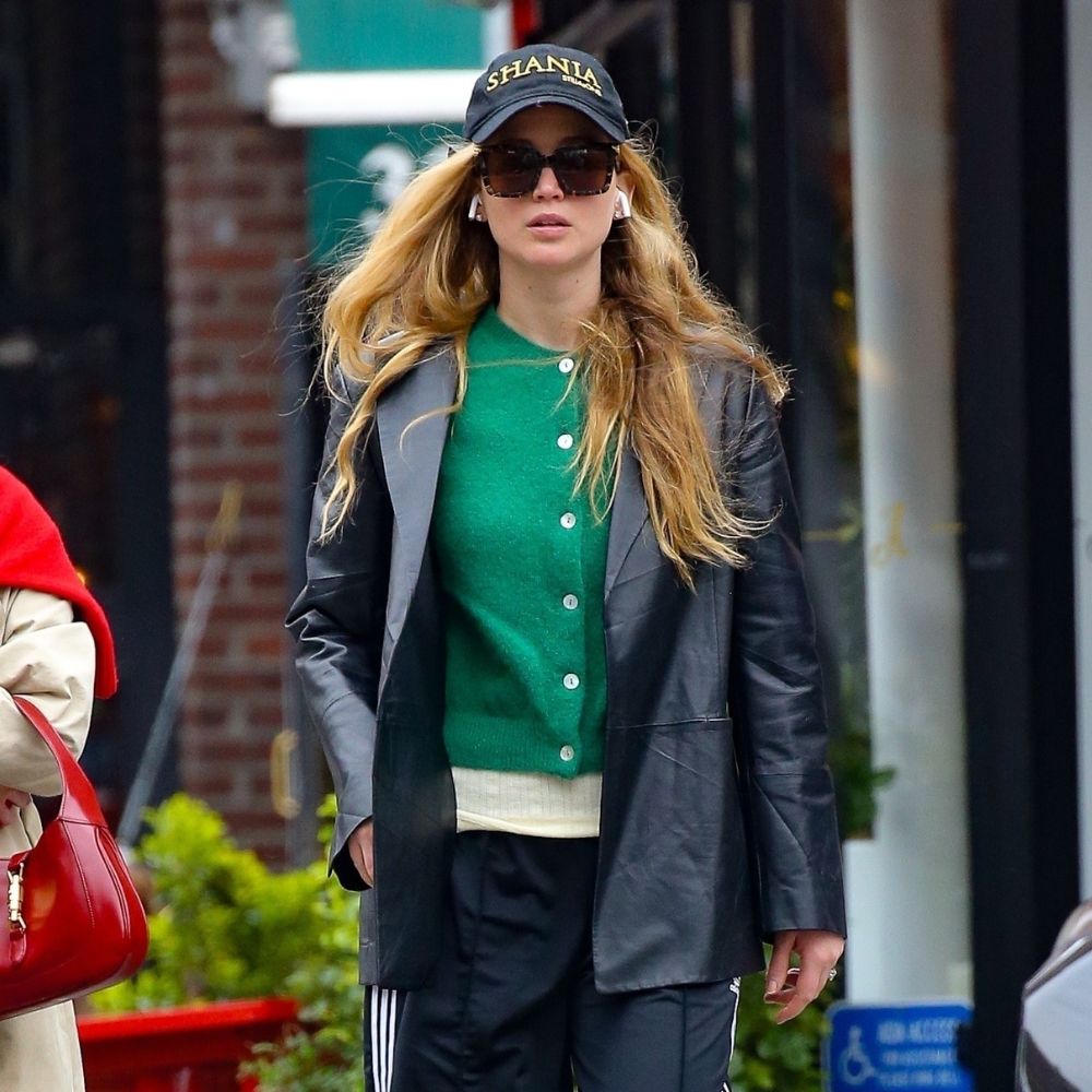 Shop Jennifer Lawrence’s Cardigan and Track Pants Outfit: