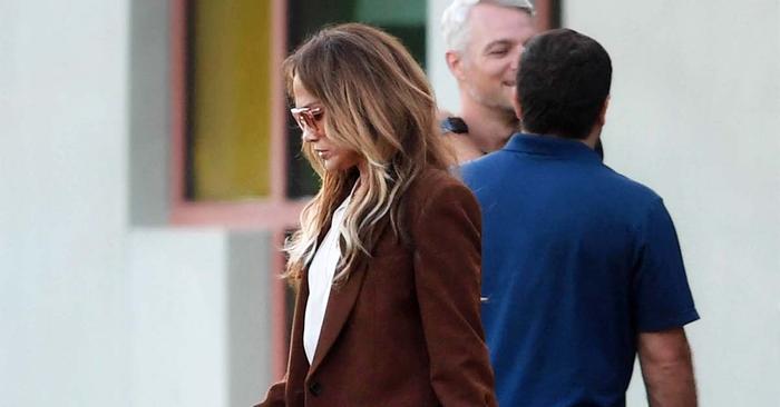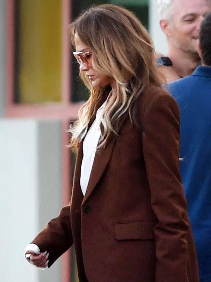 Proof of this lies in her most recent street style sighting, which shows her wearing a muted colour palette of cognac and mocha brown and combining fabrics like suede, silk, and denim. Specifically, Lopez wore a brown A.L.C. blazer and white blouse with straight-leg jeans, platform heels, oversize sunglasses, and the most gorgeous cognac-coloured suede Birkin I’ve ever seen. The result? The kind of low-key ensemble that immediately comes to mind when you think of casual luxury.