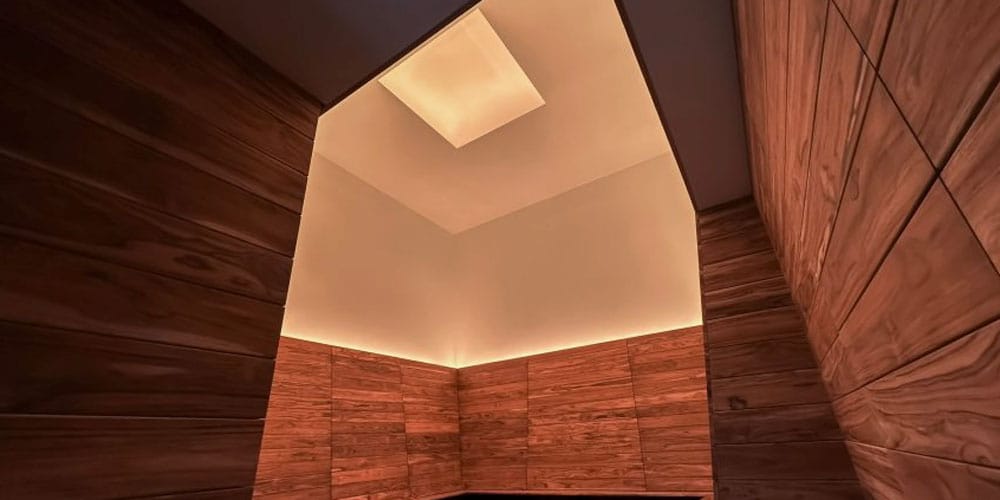 “Turrell’s Skyspaces are specifically proportioned chambers where viewers have a unique and personal experience of the sky through a knife-edged aperture in the roof,” said the artist’s team. “During the day, the aperture will be closed, and an immersive light show will be displayed, providing an artful extension of the campus. During sunset, the aperture will be opened, and the space will be exposed to the unobstructed sky, with a curated internal light sequence that complements the nuances of those times.”