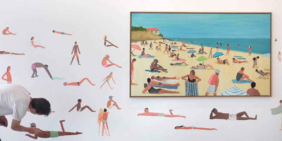 For this exhibition, Jullien merges his signature practices of painting and illustration to create vivid and meditative scenes that reflect his personal experiences. The artist draws on the walls around the canvases to accentuate and elevate the scenic compositions shown in his paintings that reflect seascapses and countryside vistas.