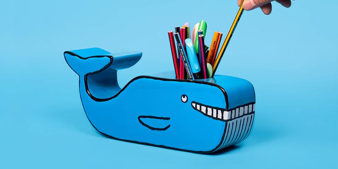 A year on from their collaborative chair sculpture, French artist Jean Jullien and Case Studyo are back with another (functional) edition called La Baleine (The Whale). Playing in line with his whimsical two-dimensional illustrations, the porcelain artwork features a cheerful blue whale with a scribbly hand-drawn vibe with an open blow-hole that can hold pens, colored pencils, flowers or whatever else that comes to mind.