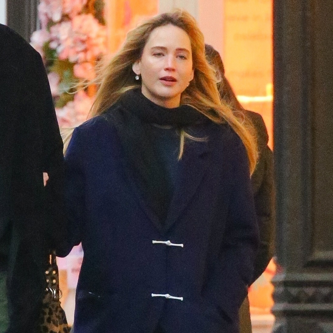 On Jennifer Lawrence: Yali Milano coat; vintage Prada bag; Adidas Taekwondo Sneakers ($100)