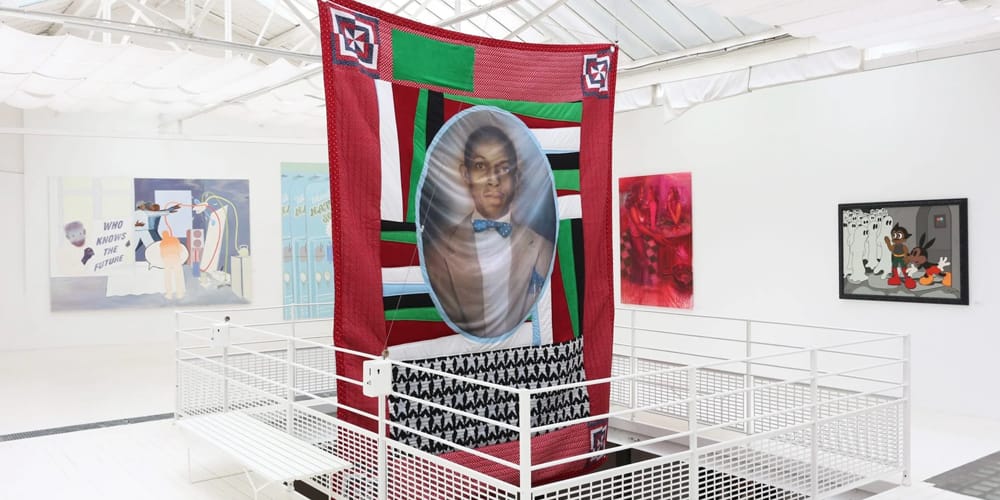 The exhibition includes works from friends like Jewel Ham, Benga Minthe, Jahlil Nzinga, Teoni, and Goldie Williams, each exploring the idea of chosen family through various mediums. Visitors are greeted by a vibrant display of intentional art, signaling Robinson’s promising start in the art world. Alongside the exhibition, he released the “A Friend Named Cousin” sneaker collection with New Balance, available via raffle.