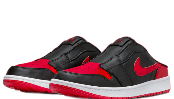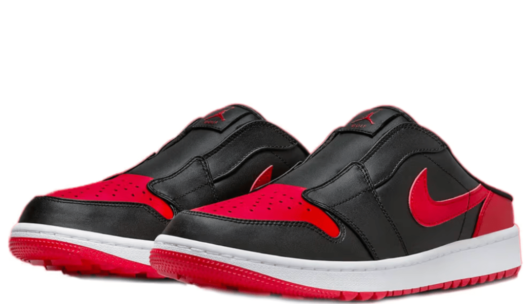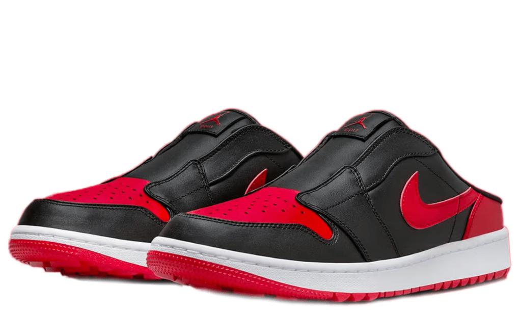 Dressed in iconic “Bred” colorways, the new slip-on silhouette makes its debut, coming to life as a lace-less and heel-less Air Jordan 1. While they’re branded “Golf” we presume players would likely wear these as transitional shoes rather than on the course.