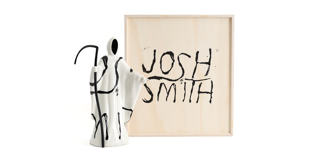 In Smith’s latest edition, he casts the grim reaper in white porcelain with hand-painted black embellishments that spell out the artist’s name. The sculpture stands as a bleak reminder of our shared mortality, simultaneously urging onlookers to find beauty in everyday moments, despite the uncertainties that life throws. “Don’t fear the reaper,” Smith says.