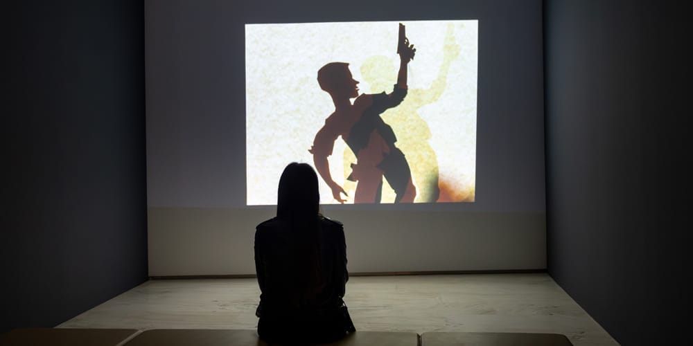One of Walker’s earliest pieces, entitled “I’ll Be a Monkey’s Uncle,” is highlighted in the show and features Walker’s recognizable black cut-out silhouettes. Another body of work features a row of large-scale silkscreens where Walker superimposed images of Southern folk tales alongside brutal depictions of slavery that are then juxtaposed with elements from Greek mythology. Rounding out the exhibition is a 12-minute animated film provided by artist herself.