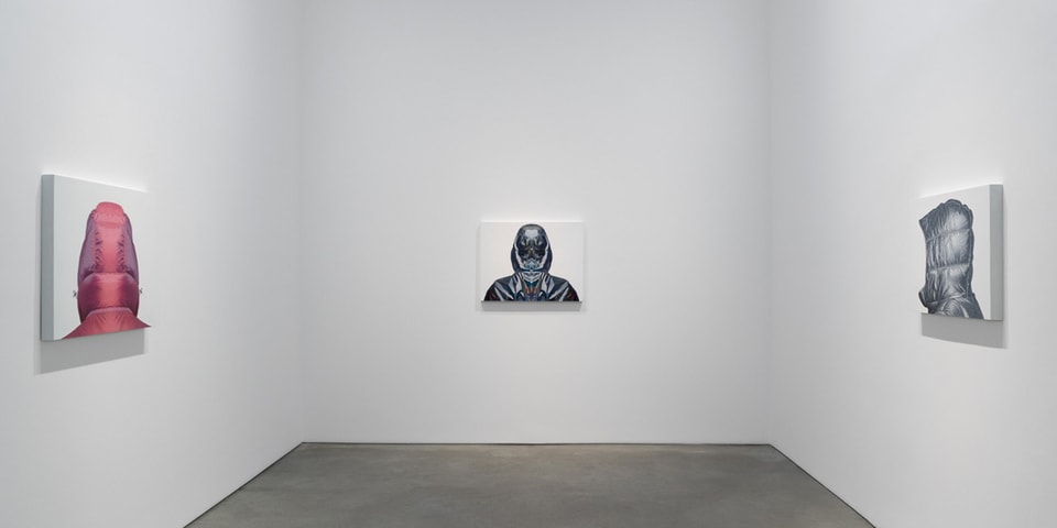 The suite of three paintings plays special emphasis on the captivating silhouettes found in modern-day outerwear and tech gear. By hiding the identities of his subject, Funk allows the viewer a magnified look at the often overlooked beauty in various garments that would have otherwise gone unnoticed. He achieves this effect by distorting his compositions in Photoshop, bringing a psychedelic effect that ruminates on form and refraction.