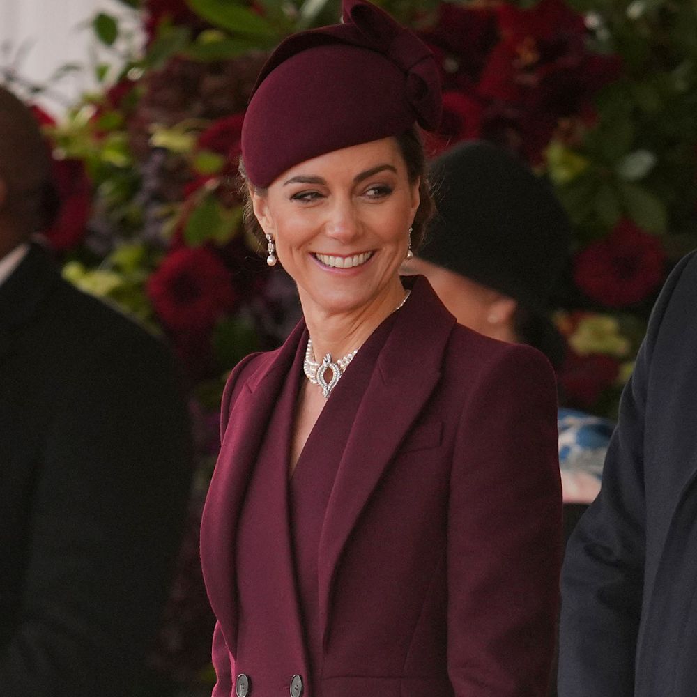 Taking her cues from London’s most stylish, even Catherine, Princess of Wales was spotted styling the red wine shade this week. Arriving for an engagement at Buckingham Palace today, Middleton chose a head-to-toe burgundy outfit complete with a coordinating hat and tall burgundy boots.