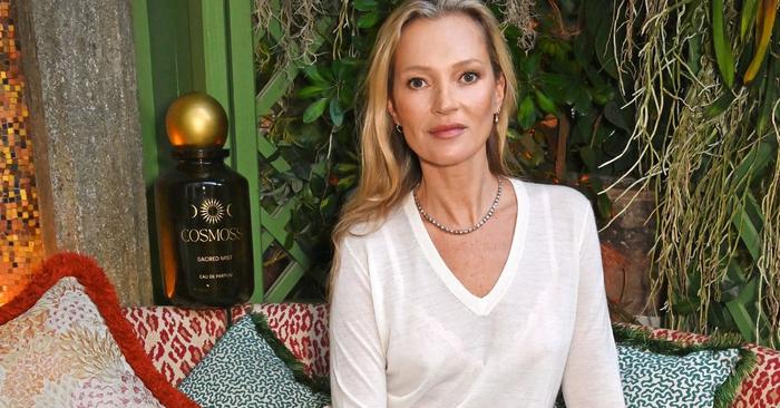 Whilst hosting at London’s favourite members club and celebrity hotspot, Annabels, Kate Moss wore a light knit V-neck top with tonal white wide leg trousers in celebration of the first anniversary of the launch of her beauty and wellness brand, Cosmoss.