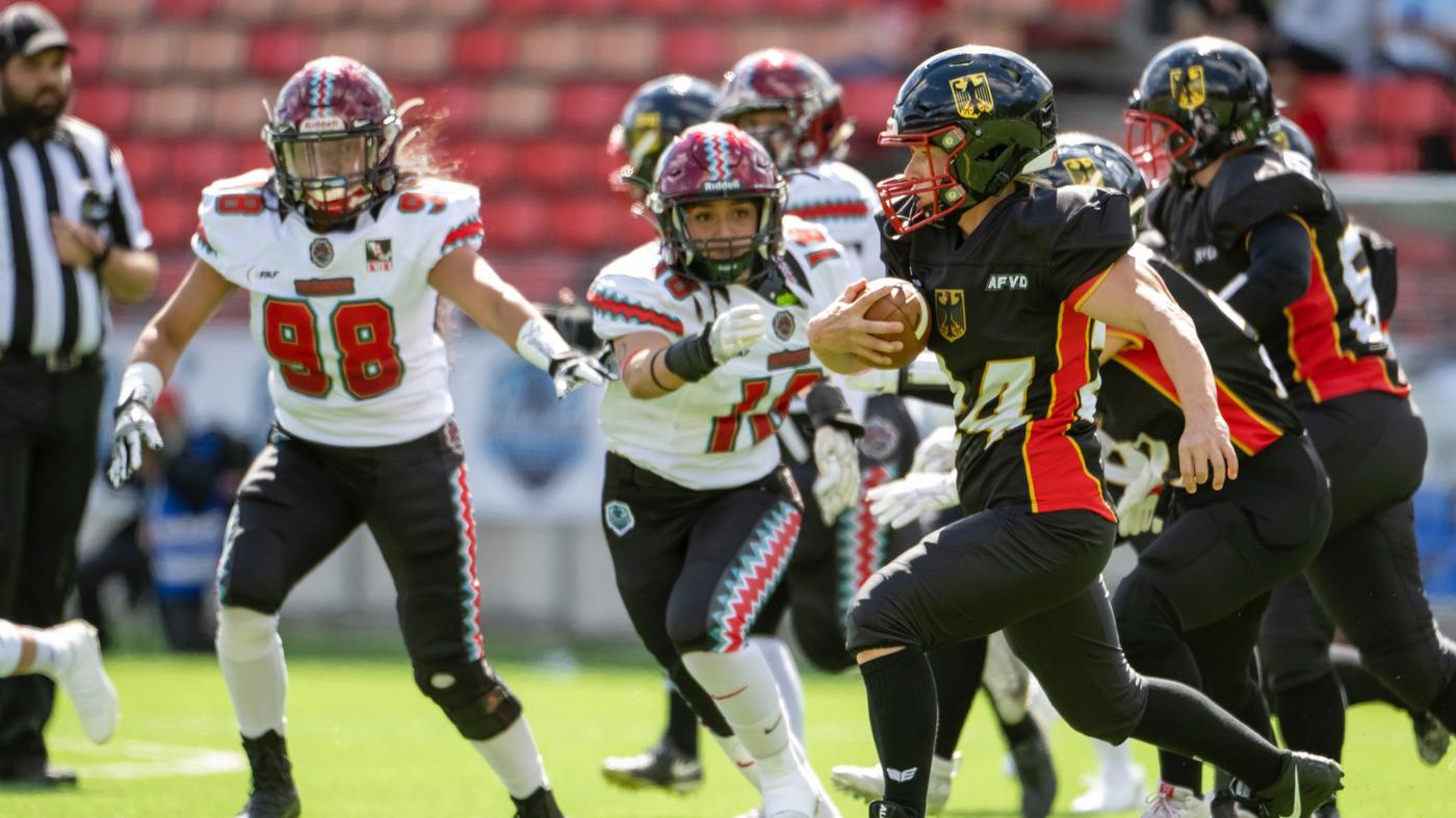 Rippchen, Nachos, Pizza und Kartoffel-Wedges – bei Susanne Erdmeier wird am Sonntagabend groß aufgetischt. „Ein bisschen American Lifestyle wollen wir schon haben“, sagt die ehemalige Football-Nationalspielerin und lacht. Den Super Bowl wird sie gemeinsam mit ihrem Mann und Freund*innen gemütlich von zuhause auf der Couch mitverfolgen, am Montag muss die 41-jährige nämlich arbeiten. Das macht ihr aber nichts aus, denn ihr Lieblingsteam, die Las Vegas Raiders haben es ohnehin nicht die Finalrunde geschafft. „Deshalb ist es mir persönlich auch egal, wer gewinnt.“