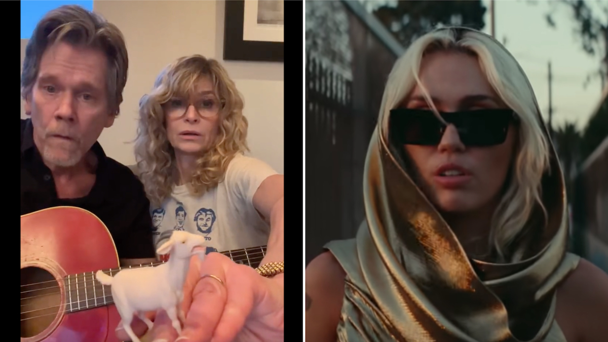 Kevin Bacon can buy himself flowers. The actor took to his social media today, along with his wife Kyra Sedgwick, to cover Miley Cyrus’ smash hit “Flowers” — featuring the stylings of a screaming toy goat.