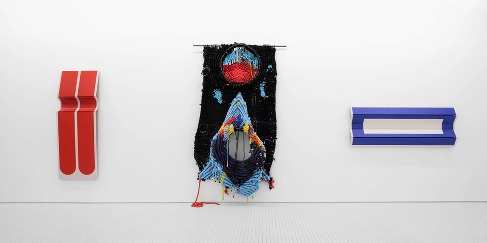 Although conceptually similar, Moreland takes a far different approach to shape, color, and form. His flattened canvases are hand-made with leather hinges and metal tracks that the Los Angeles-based artist uses to add a layer of mystery to his flattened 3D compositions.