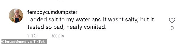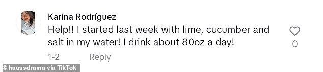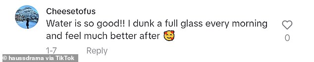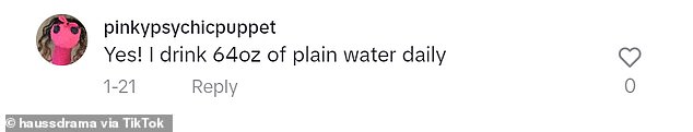 ‘Yes! I drink 64oz of plain water daily,’ someone else responded.