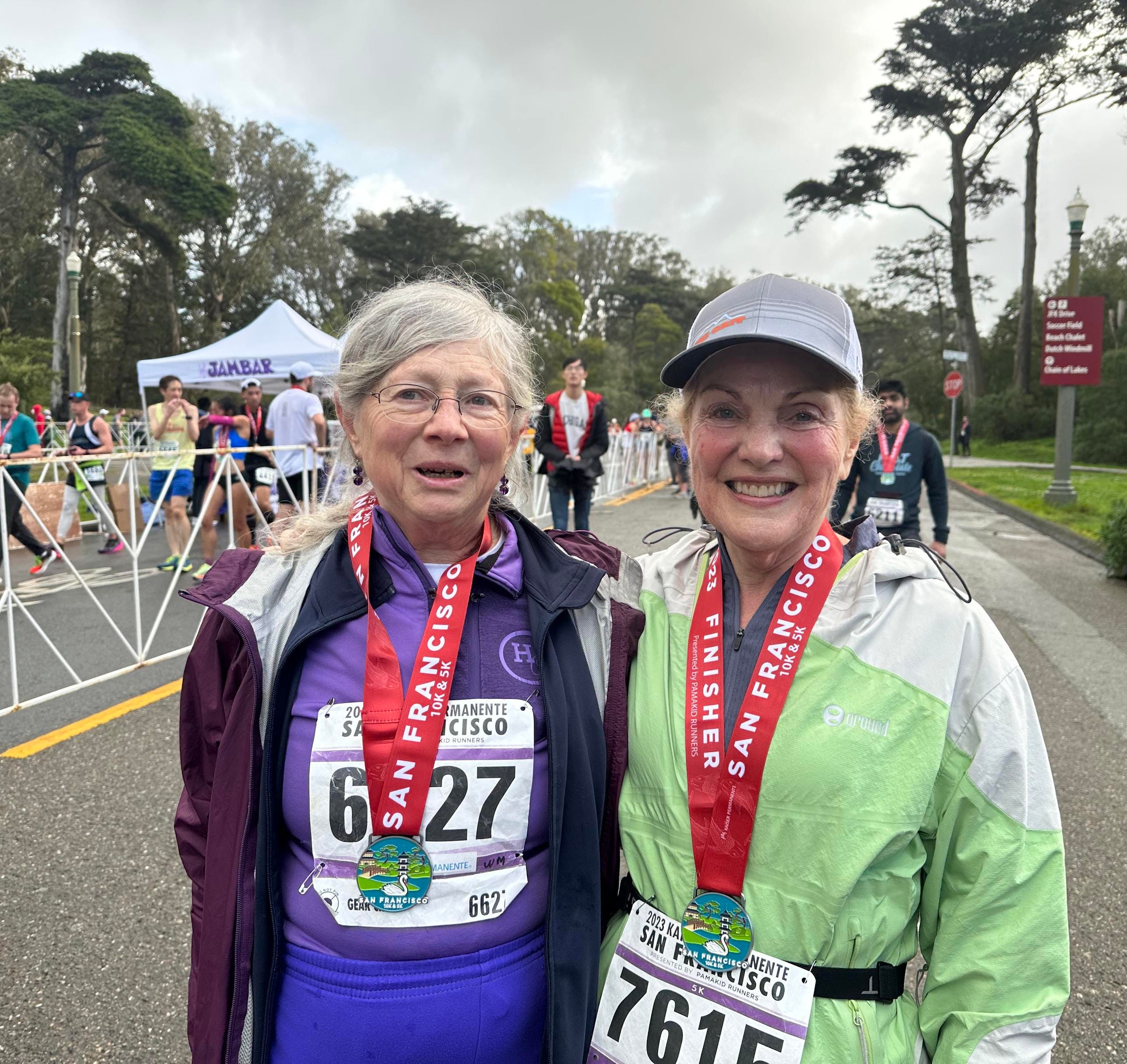 The start line of the annual race in Golden Gate Park, San Francisco, was crowded. A rain delay had participants just waiting. I looked over at a woman next to me, and said “hello”. She was friendly and we had a conversation. When the announcer asked who was celebrating a birthday, we both raised our hands. I mentioned that I was happy to be a participant with an upcoming birthday. “Me too!” she said. I asked what birthday it was. “I’ll be 81 tomorrow” she replied! I was so excited to meet her. She looked to be about my size and we are both seniors. We even have the same first name, spelled the same: Carolyn. We had both registered for the 5K (3.1 miles) and we both do it by a combination of run/walk. So much in common already!