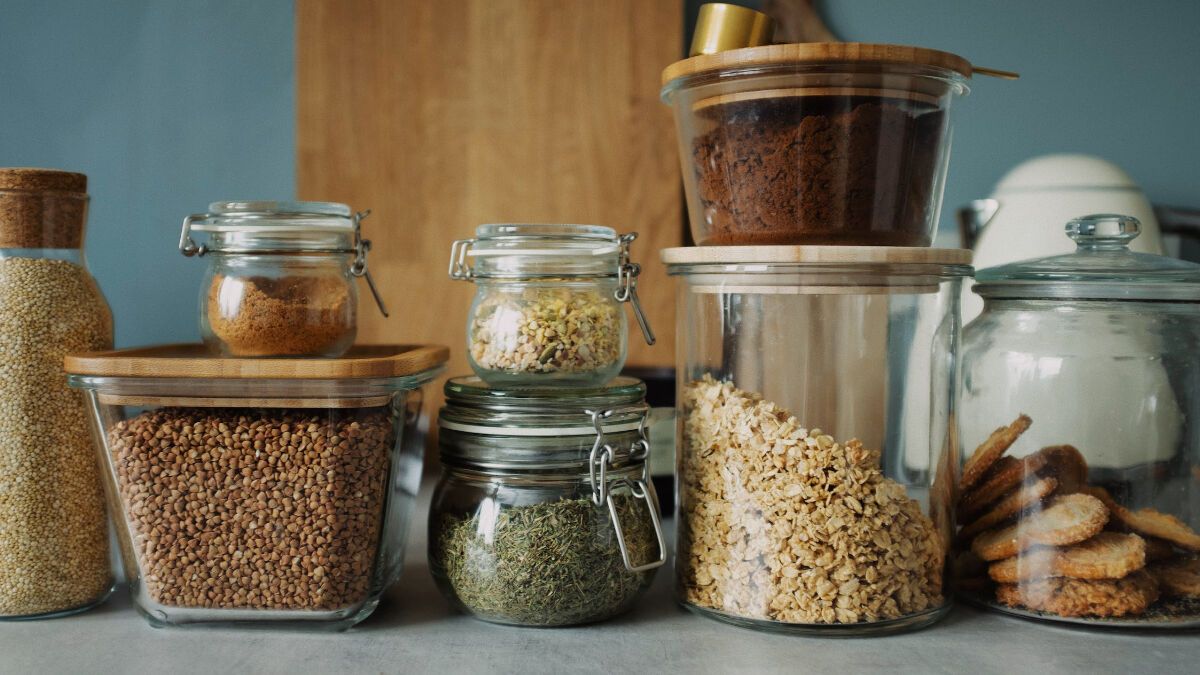Trockenen Zutaten, wie Nudeln und Reis oder Konserven können in der Abstellkammer oder im Schrank gelagert werden. Hier sollte man darauf achten, dass die neuen Vorräte nach hinten gestellt werden, damit die Lebensmittel mit dem kürzeren MHD immer vorne stehen.