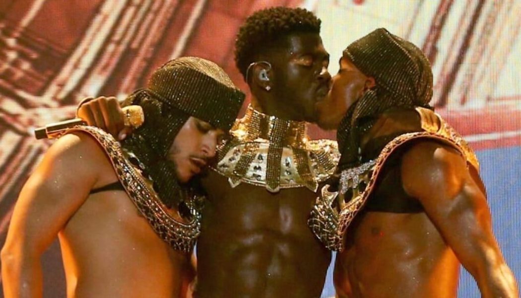 The steamy moment came during a performance of “Montero (Call Me by Your Name)”, a song about the joys of gay sex that peaked at No. 1 on the Billboard Hot 100. The set was inspired by African royalty, and climaxed with the singer locking lips with one of his male dancers. This led some viewers to complain on Twitter, and if you’ve been following Lil Nas X for any length of time, you could almost hear the Jaws theme starting up.