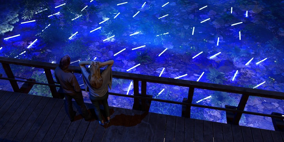 Amongst the work on view, each visitor will take on the role of collaborator by controlling 20-foot-tall stick figures made of light and providing their voice recording into a chorus of echoes from past participants. Arguably the highlight of the show will center around Summon — a luminescent sea of lightbulbs that glimmer to the pulse of each participant.