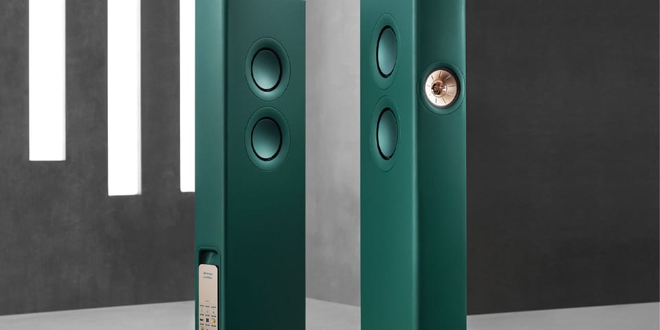 As for the KEF LS60 Wireless Lotus Edition, the brand has opted for a very scaled-back approach and subtle branding elements. Details include a finish in an iconic British racing green, often found on Lotus vehicles, as well as subtle lettering in gold at the front reading “Lotus NYO” and “Lotus Edition” in green at the back.