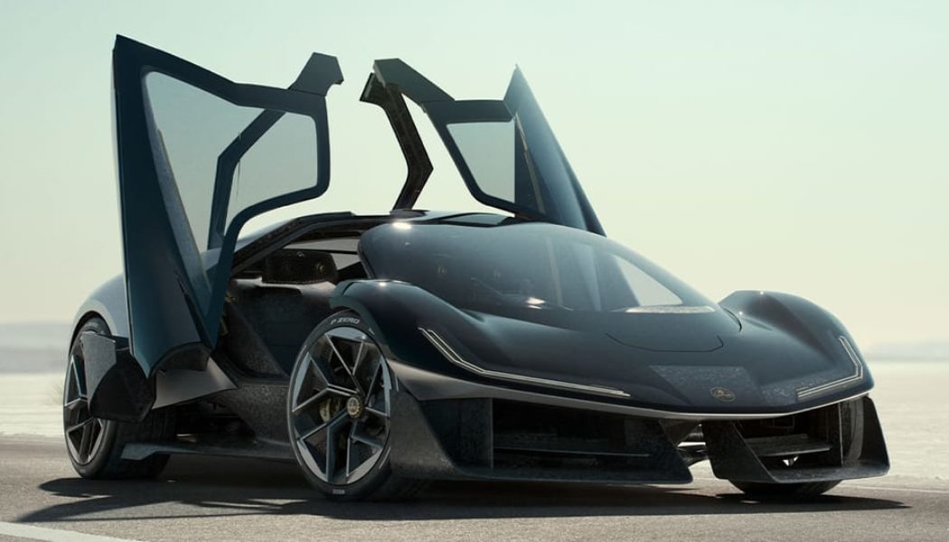 Powered by a 987 hp electric drivetrain, the Theory 1 boasts a 0-62 mph time of under 2.5 seconds and a range of 250 miles. Thanks to innovative materials like recycled glass fiber and titanium, the Theory 1 weighs only 3,500 lbs, said to be a purposeful tie back to the brand’s founder Colin Chapman’s famous principle of “simplify, then add lightness.”