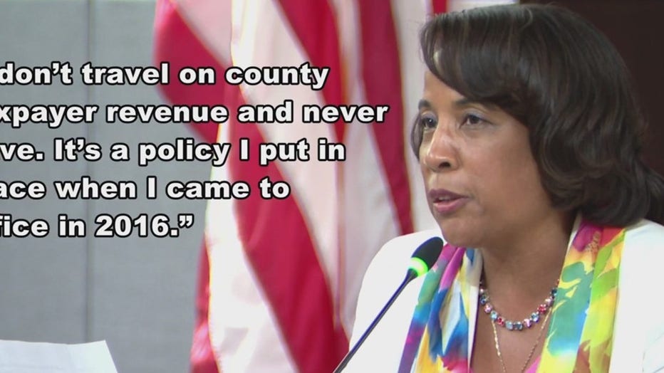 Chair Phyllis Randall sent FOX 5 a statement via phone saying, “I don’t travel on county taxpayer revenue and never have. It’s a policy I put in place when I came to office in 2016.”